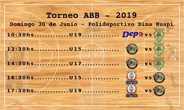 La ABB informó que este fin de semana la actividad continúa con sede en la cancha de Dina Huapi, con una doble jornada. El sábado, a partir de las 14hs, habrá un encuentro de las categorías cebollitas, premini y mini entre Dina Huapi, Pehuenes, la Escuela Municipal y CUBA. A las 19hs, en U-13, el local enfrentará a Pehuenes. Y a las 20 hs, en primera, será el turno de Dina Huapi - CUBA