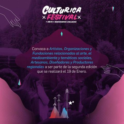 Hoy queremos anunciar que abrimos la convocatoria a Artistas, fundaciones, organizaciones, diseñadores, artesanos y productores regionales interesados en participar de la segunda edición de Culturica, festival de Arte y Consciencia Ecológica.