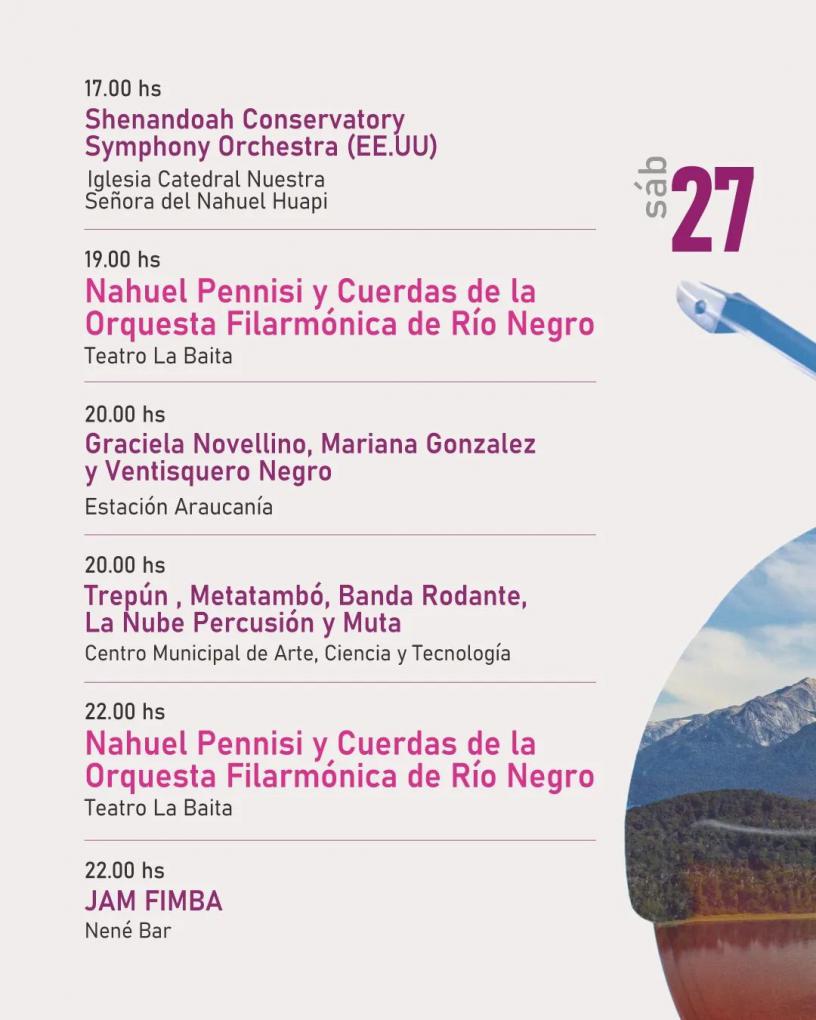 El Festival Internacional de Música Bariloche (FIMBA) ofrecerá el fin de semana un sinfín de encuentros artí ...