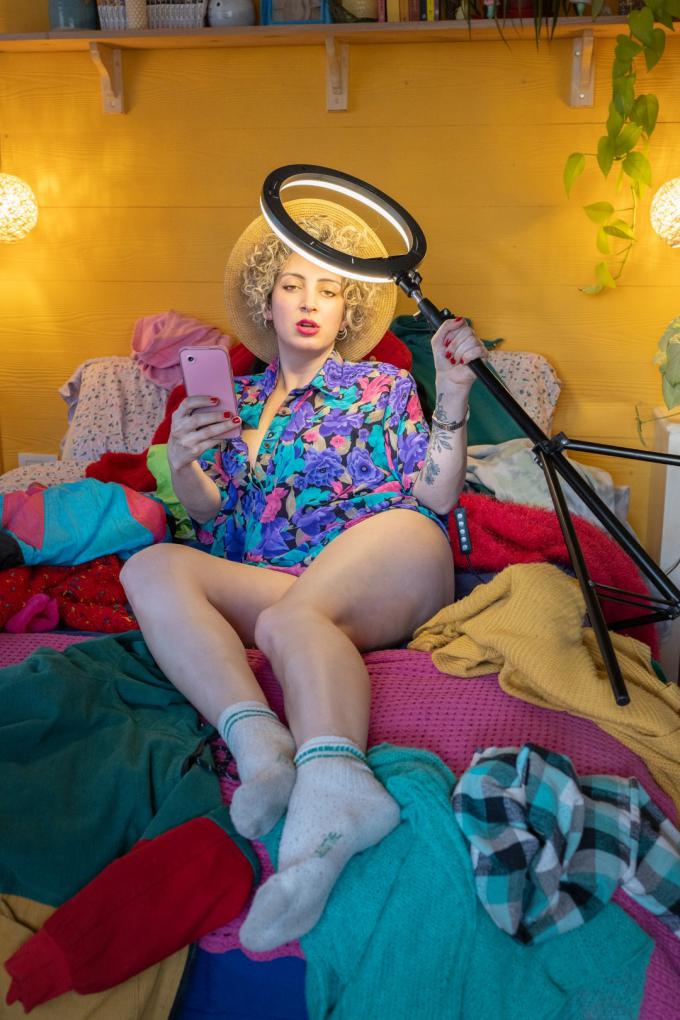 A partir de análisis sociológicos, lecturas y experiencia personal de consumo y generación de contenido en redes sociales, utilizo mi práctica artística centrada en el autorretrato para explorar el papel del influencer lifestyle de manera performática.