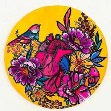 Actualmente me encuentro trabajando en mi proyecto autogestivo de Mates Pintados, también realizo cuadros, intervención de distintos objetos, murales y participo activamente de la agrupación de Mujeres Muralistas Argentinas - Ammura Bariloche-.