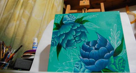 Mi formación es autodidacta, estudio pintura desde los 17 años; comencé en un pequeño taller, donde conocí el acrílico y más tarde de la mano de una gran profe - Marisa Fuentes- conocí el óleo y muchas técnicas que me enamoraron aún más de este mágico mundo.