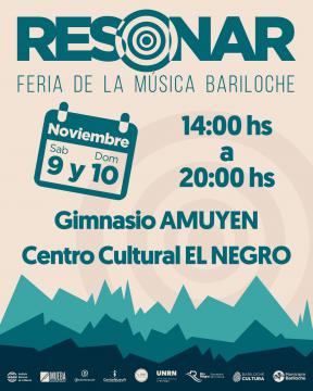 Los días sábado 9 y domingo 10 de noviembre de 2024, de 14:00 a 20:00 horas, sucederá la primera edición de RESONAR, la Feria y Expo-Música de Bariloche y la región cordillerana.