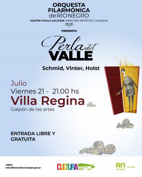 Perla del Valle forma parte de la Orquesta Filarmónica de Río Negro y dependen de la Secretaría de Estado de Cultura de Río Negro.