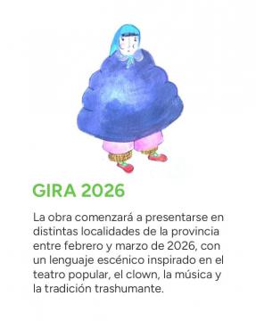 La obra comenzará a presentarse en distintas localidades de la provincia entre febrero y marzo de 2026, con un lenguaje escénico inspirado en el teatro popular, el clown, la música y la tradición trashumante.