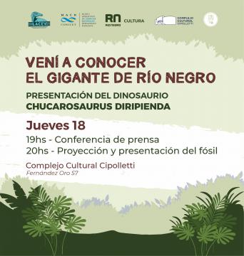 Durante la conferencia de prensa organizada por la Secretaría de Estado de Cultura de la Provincia, los paleontólogos involucrados en el hallazgo explicarán el proceso de descubrimiento y brindarán detalles del animal que habitaba la Patagonia hace unos 90.000.000 de años y pesaba entre 40 a 50 toneladas y medía unos 30 metros de longitud.