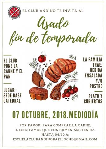 Necesitamos que confirmen asistencia hasta el 4 de octubre, para comprar la carne, al mail: escuelaclubandinobariloche@gmail.com