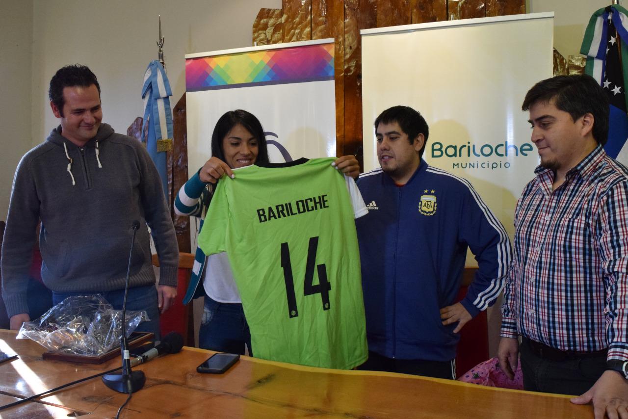 Se trata de una iniciativa conjunta entre la Subsecretaría de Deportes del Municipio y la Subsecretaría de Deportes de Río Negro. Esta mañana los titulares de ambas áreas, Carlos Arrative y Juan Pablo Muena, anunciaron el evento en una conferencia de prensa con la presencia de Miriam Mayorga y del representante de la Liga Municipal de Futbol Femenino, Matías Padilla, que le entregó a la deportista la camiseta oficial de la Liga con el número 14.