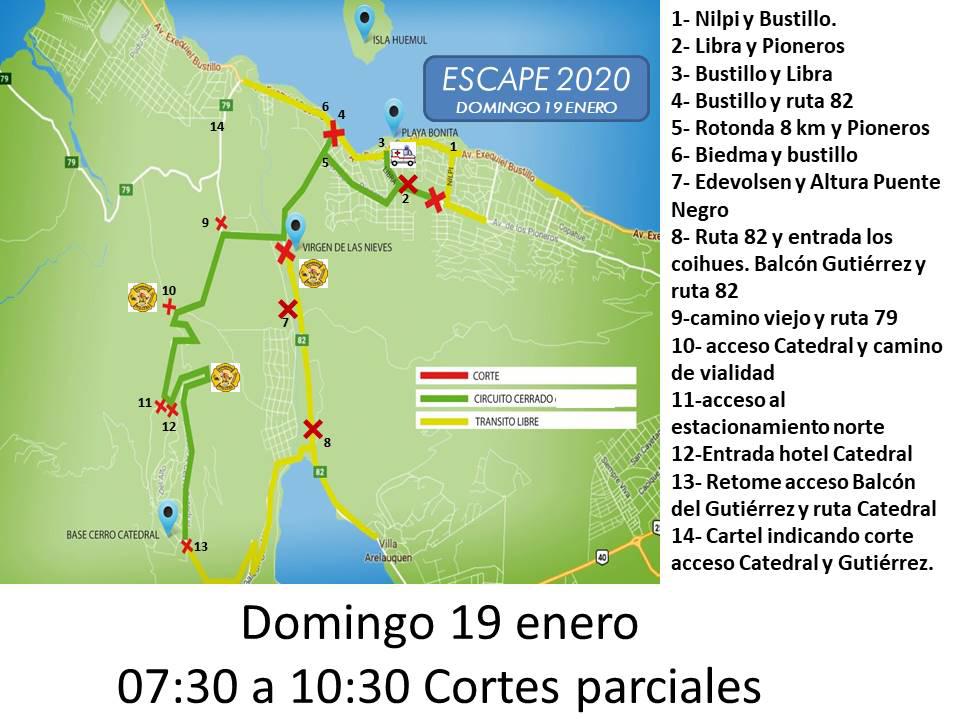 Sobre la avenida De los Pioneros habrá cortes totales en ambas manos a partir de calle Nilpi (km 6), durante la franja horaria de 7:30 a 10:30. También habrá cortes en la ruta provincial 82, la 79 y acceso a Catedral.