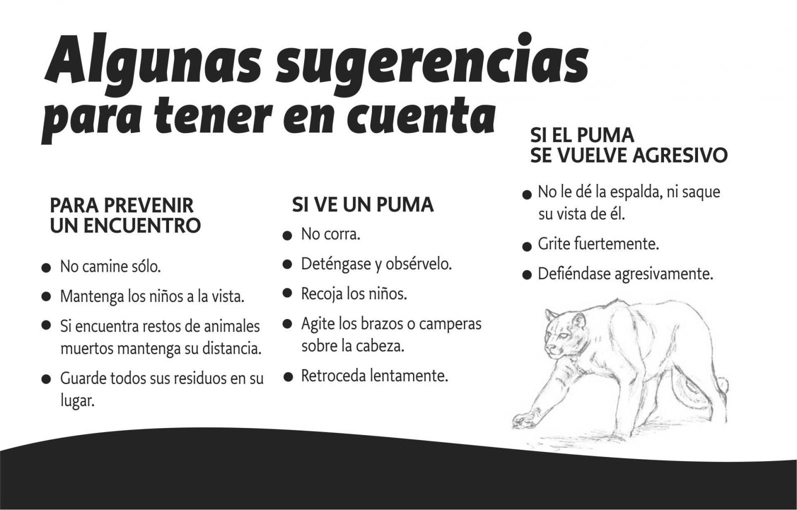 En este caso de encontrarse con un puma, tener en cuenta las siguientes recomendaciones y teléfonos de contacto: