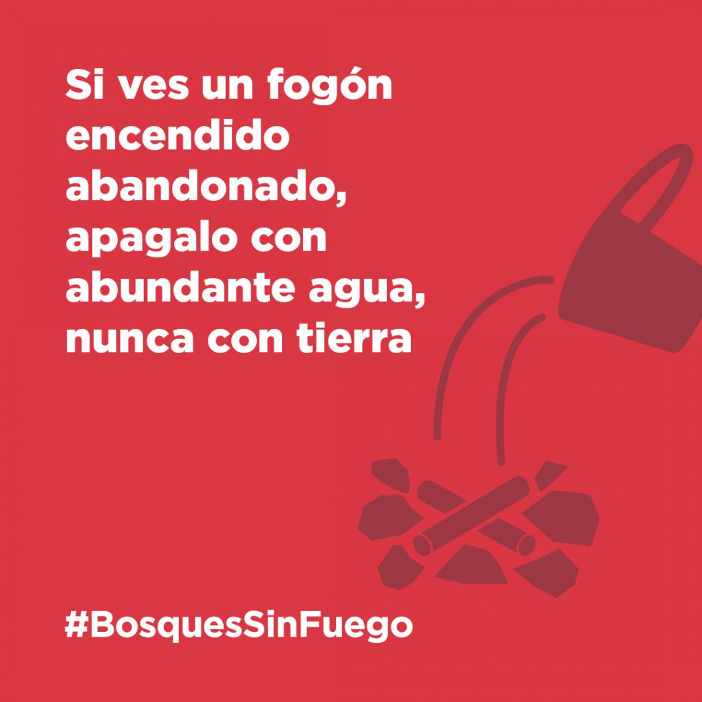 · Apagarlo sólo con abundante agua, arrojándola sobre el fogón y alrededor de la fogata. Nunca utilizar tierra.