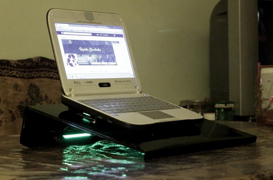 El primer proyecto que realizamos en Reciclo Bariloche fué una base refrigerante para notebooks/netbooks/ultrabooks, la funcionalidad de ésta es mantener al Pc a una temperatura estable relativamente baja, para poder asegurar un buen rendimiento de la misma y al mismo tiempo asegurar que tendrá un tiempo de vida prolongado y no se estropeará por altas temperaturas en el procesador.