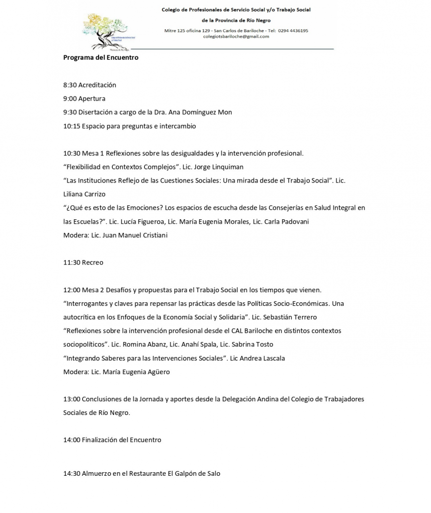 El Colegio de Profesionales de Trabajo Social y/o Servicio Social de la Provincia de Río Negro saluda ...