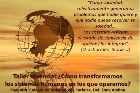 El Colectivo de Trabajadores Sociales de la Zona Andina invita a participar del Taller Vivencial ¿COMO TRANSFORMAMOS LOS SISTEMAS HUMANOS EN LOS QUE OPERAMOS? a cargo de la Lic. Patricia Scott . La propuesta está dirigida a persona y equipos, interesados en la evolución consciente de los grupos, organizaciones, emprendimientos o instituciones que integran.
