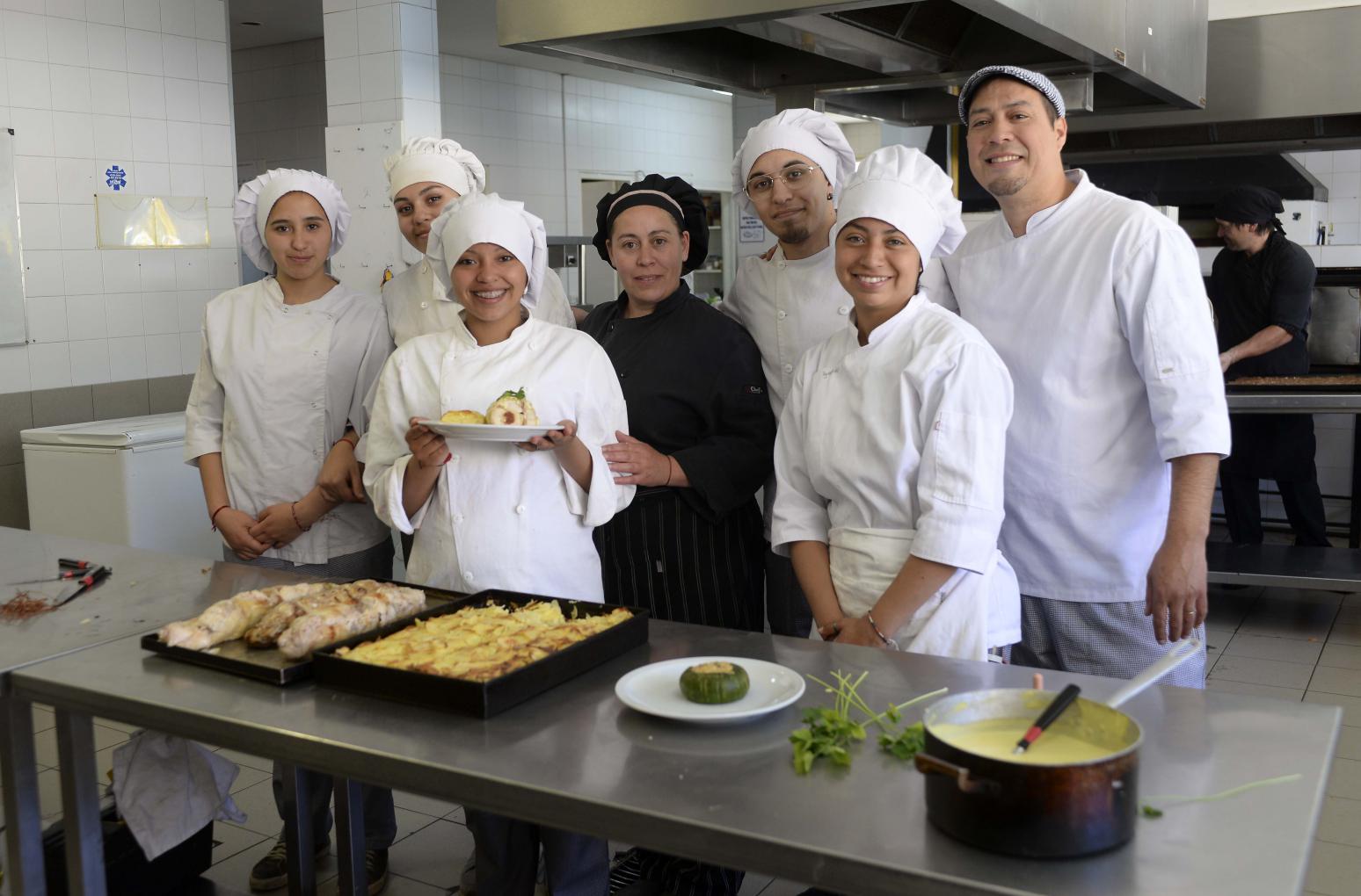 Los alumnos de la Escuela de Hotelería en la cocina. Foto: Alfredo Leiva