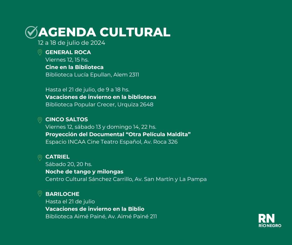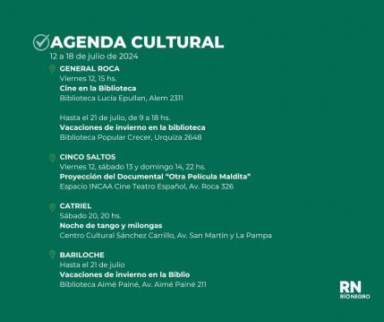 Agenda Cutural Rio Negro del 12 al 18 de Julio