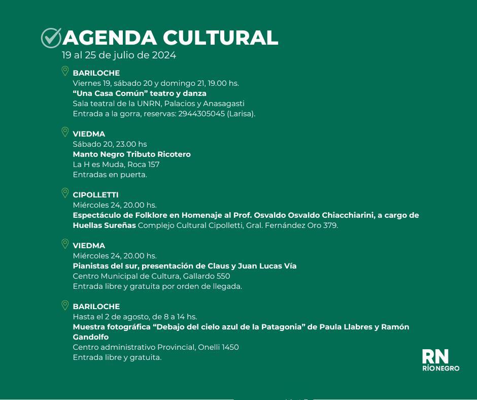Agenda Cutural Rio Negro del 12 al 18 de Julio