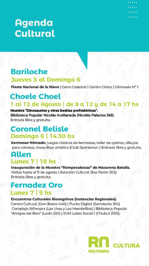Hola! Llegó la AGENDA CULTURAL de esta semana y queremos compartirla con vos