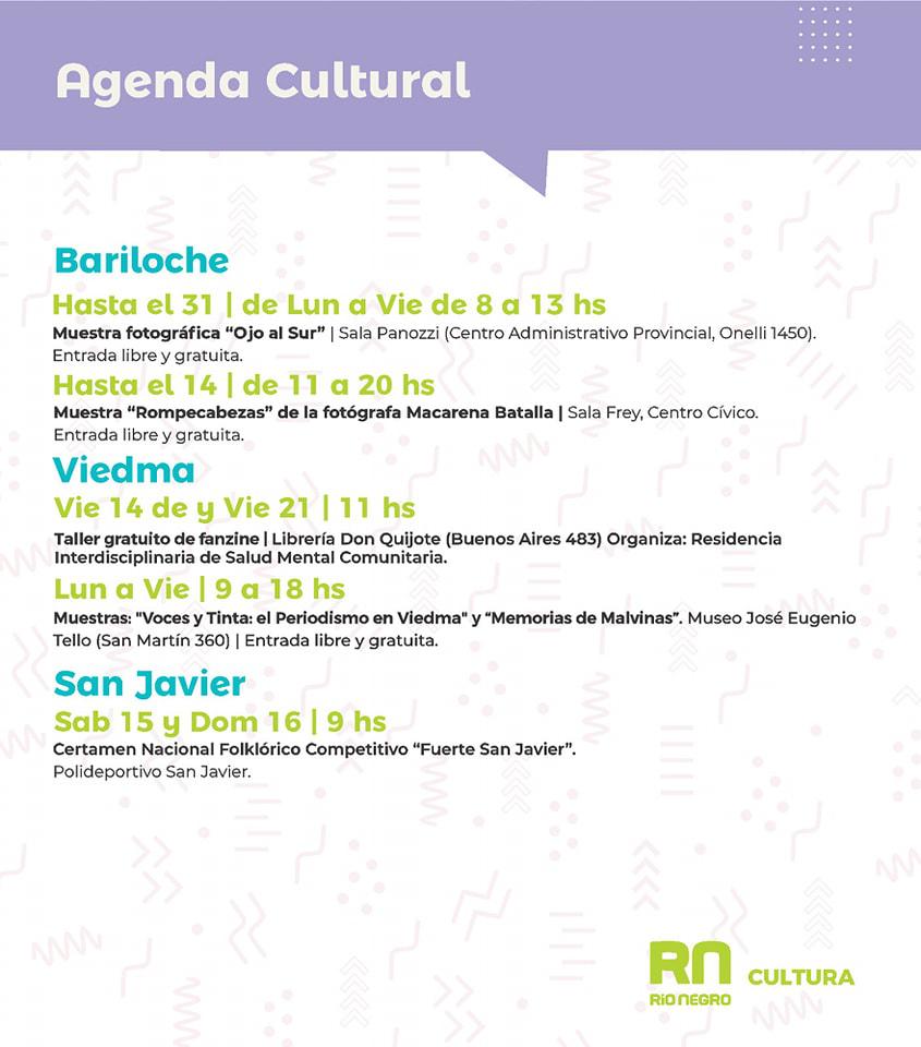 💃 Taller de danza-teatro en Luis Beltrán, Certamen Nacional Folklórico Competitivo en San Javier, muestra de Dinosaurios y otras bestias prehistóricas en Cipolletti destacan entre las actividades que organiza y acompaña la Secretaría de Estado de Cultura esta semana. Vos, ¿dónde las disfrutás?