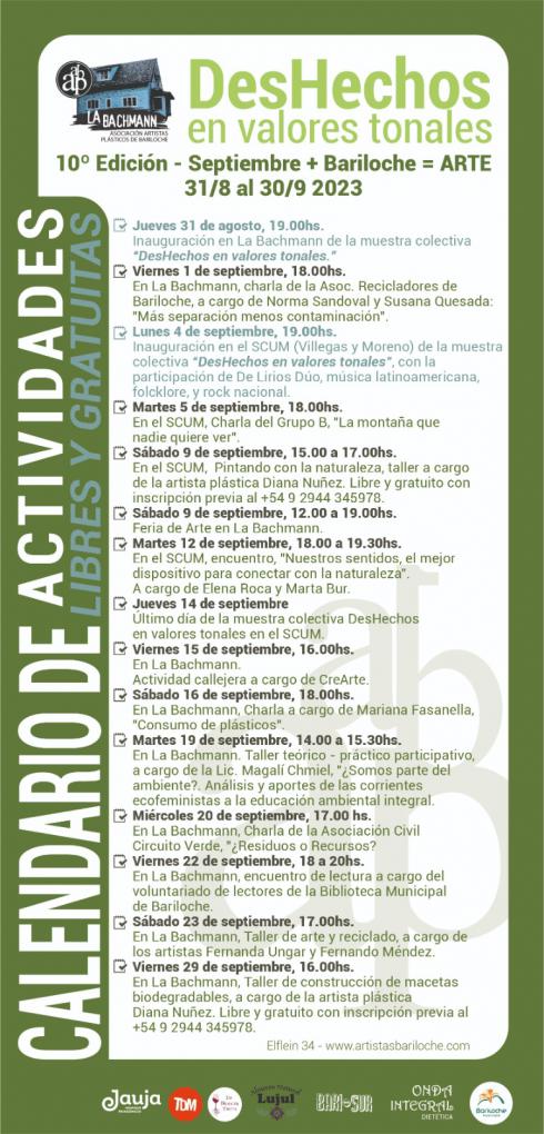 Con renovado orgullo desde la Asociación de Artistas Plásticos de Bariloche presentamos la nueva programación para el evento anual Septiembre + Bariloche = Arte, que a su vez coincide con el primer aniversario de La Bachmann como sede de la AAPB.