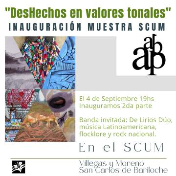 Arrancamos el último día de agosto con la inauguración de la exposición de artes visuales DesHechos en valores tonales en La Bachmann (Elflein 34). Las actividades se desarrollarán en nuestra sede, durante todo el mes de septiembre, y el SCUM (Moreno y Villegas), del 4 al 14 de septiembre. Los esperamos con numerosas actividades programadas: exposiciones, charlas, talleres y encuentros.