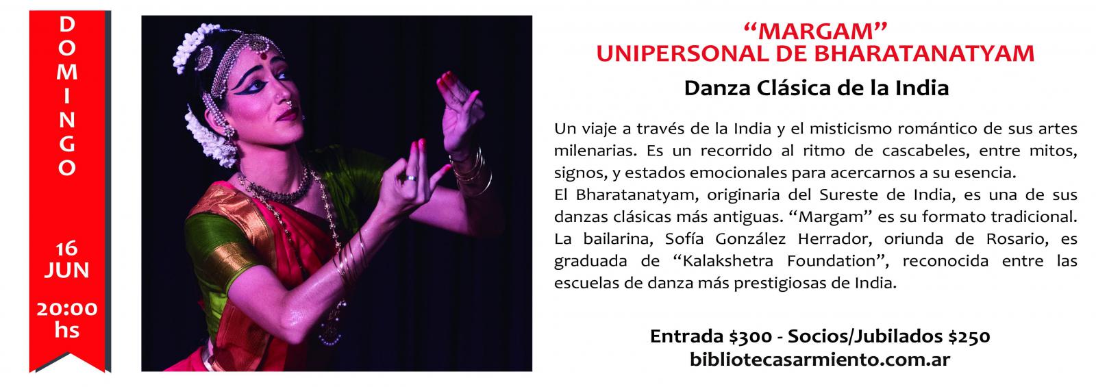 El Bharatanatyam, originaria del sureste de India, es una de sus danzas clásicas más antiguas. "margam" es su formato tradicional.