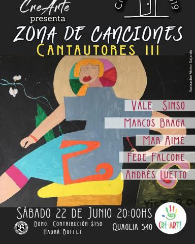 Esta vez, Crearte presenta Zona de Canciones, un recorrido por auténticas melodías que pondrán sobre el escenario a Cantautores III. Una invitación a descubrir la mirada musical y poética de cuatro jóvenes artistas de Bariloche, que saben lo que hacen y lo hacen con pasión.