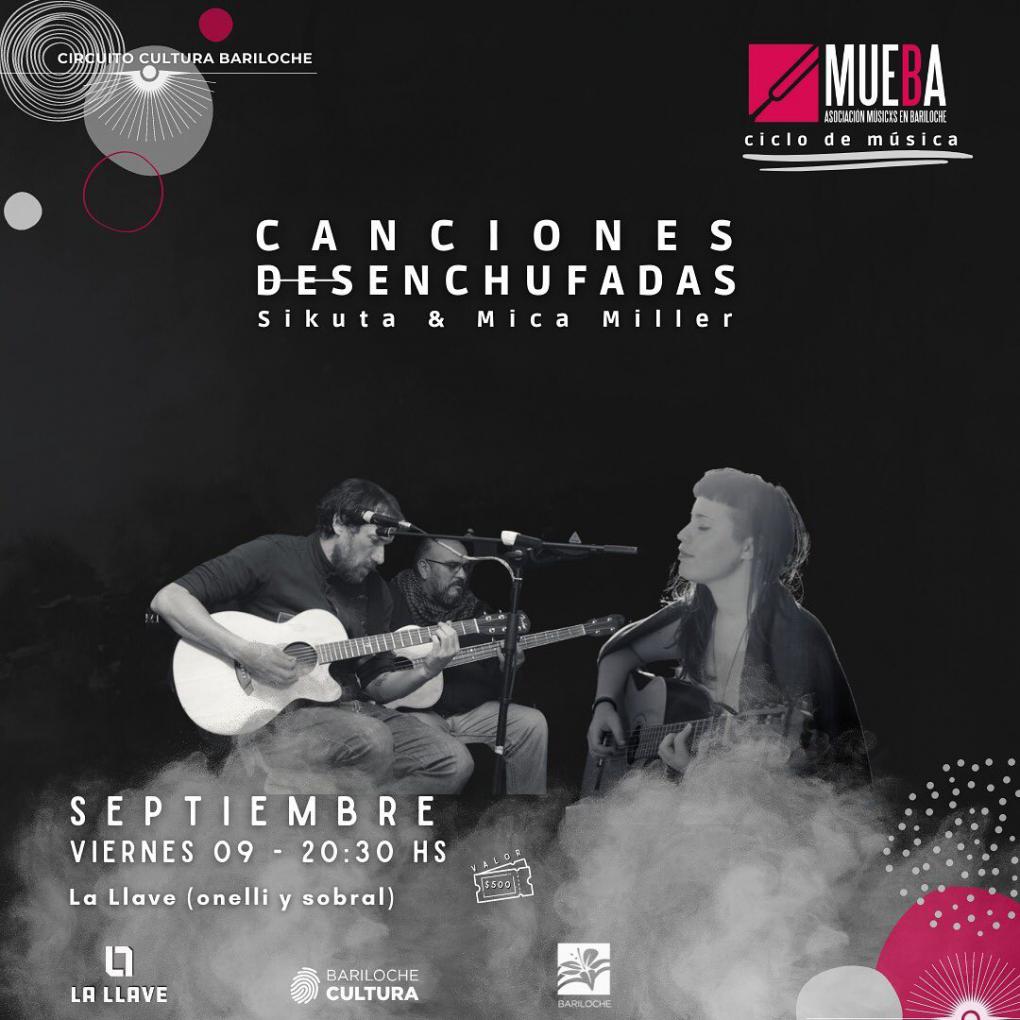 El Viernes 9 de Septiembre a las 20:30 hs, en la querida sala de la Escuela Municipal de Arte La Llave, se presentarán la banda Sikuta y la cantautora Mica Miller, dándole vida al espectáculo: “Canciones Desenchufadas”.