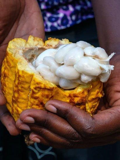 El chocolate comienza su vida en las semillas con forma de balón de fútbol del árbol Theobroma cacao.