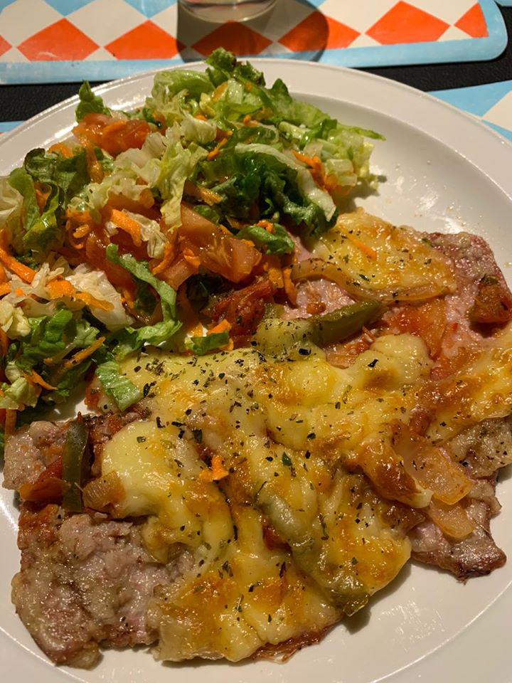 Plato del día Milanesa a la napolitana con guarnición o Fetuccinis con estofado