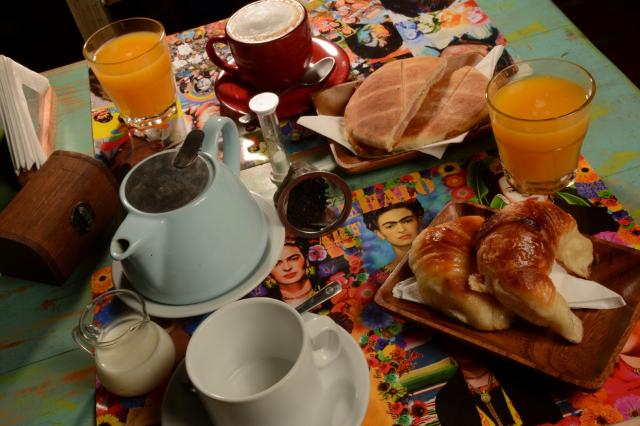 Exquisito café y gran variedad de té en hebras acompañado de cosas dulces y saladas.