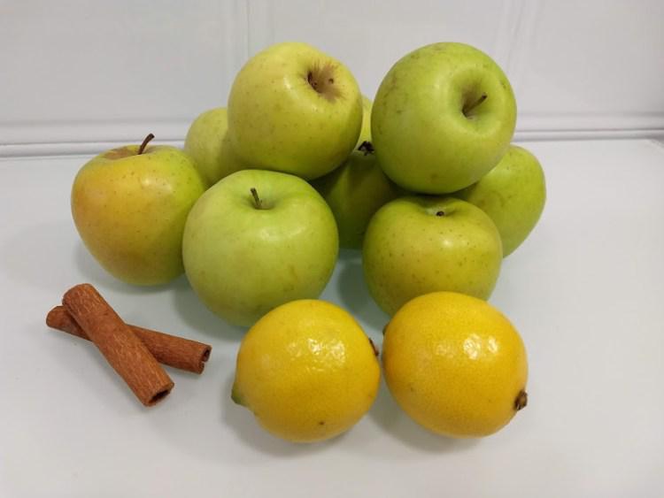 1 kilo y medio de manzanas (peladas, sin corazón y partidas) (variedades de manzanas que sean buenas para cocinar, como Granny Smith, Fuji, Jonathan, Jonagold, o Golden Delicious)