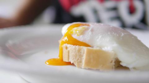 Así se ve el huevo poche al corte en un auténtico desayuno saludable