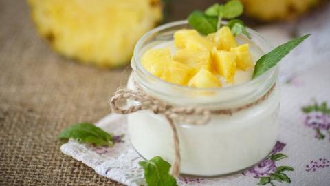 El yogur es un lácteo muy nutritivo que puede complementar cualquier desayuno o merienda. Combinarlo con frutas hará que el alimento sea todavía más completo. Consumirlo con trocitos de ananá es una idea, pero se puede hacer con cualquier otra fruta que sea de su gusto.
