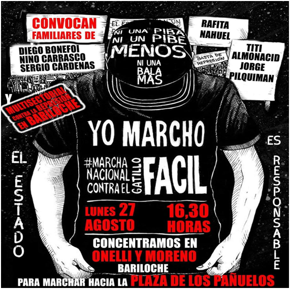 LXS FAMILIARES DE LAS VÍCTIMAS DE GATILLO FÁCIL DE BARILOCHE ADHERIMOS A LA 4° MARCHA NACIONAL CONTRA EL GATILLO FÁCIL.