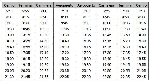 Respecto de las frecuencias de la línea 72 al Aeropuerto de San Carlos de Bariloche, los nuevos horarios constan en el cuadro que se adjunta.
