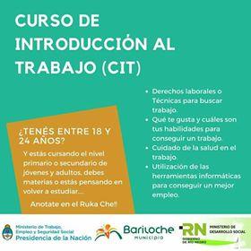 La Municipalidad de San Carlos de Bariloche junto al Ministerio de Trabajo, Empleo y Seguridad Social de la Nación a través de su Gerencia de Empleo Local, lanzarán en los meses de abril y mayo, los Talleres para el Curso de Introducción al Trabajo y el Taller de Orientación Laboral.