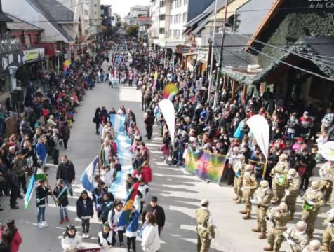 El desfile aniversario es uno de los eventos más populares que se realiza en Bariloche, que convoca a autoridades municipales, provinciales y vecinos que de manera espontánea se acercan a las calles a celebrar.
