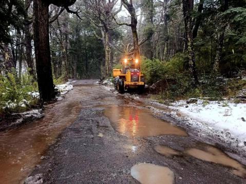 Equipos viales del Parque Nacional se encuentran trabajando en el sector afectado, evaluando el estado del camino y realizando tareas de contención y mantenimiento para minimizar los impactos del temporal.