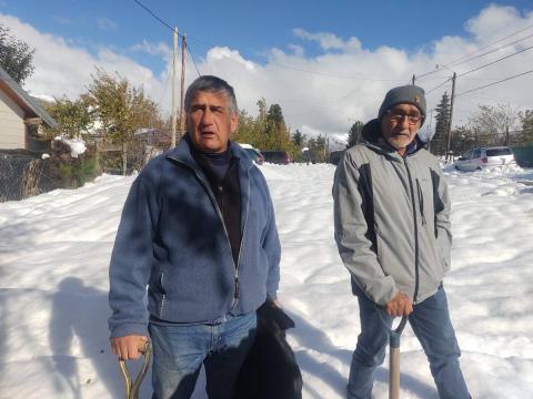 Mario Isla y José Sánchez son vecinos del barrio La Cumbre, en el límite con Jardín Botánico. El móvil de Noticiero Seis llegó hasta el lugar, en el momento que limpiaban sus veredas, con la pala a cuesta. Algo que calificaron como divertido ya que con la acumulación de nieve los más grandes y los más chicos disfrutan de memorables o improvisadas pistas en las calles. Los dos también coincidieron en que la gran nevada caída en las últimas horas se asemeja bastante a la que cayó los primeros días de mayo de 1984.