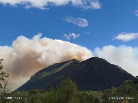 En la zona de Cascada los Alerces, un equipo del COE permanece en el lugar junto a las poblaciones, continuando con las tareas preventivas planificadas y monitoreando el comportamiento del fuego.