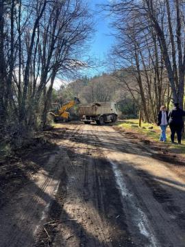 Personal de la delegación municipal estuvo trabajando en el ensanchamiento de calles del barrio Lago Moreno, junto con la dirección de juntas vecinales. Este trabajo mejorará la conexión en la zona.