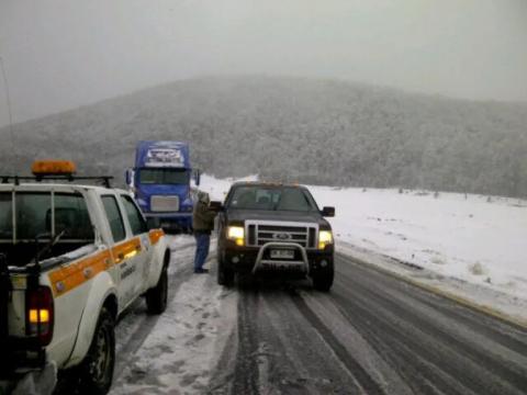 La portación de cadenas es obligatoria para todos los vehículos y recomiendan transitar con extrema precaución.