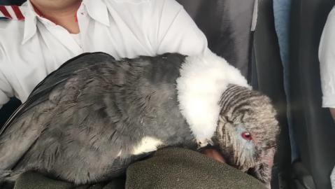Observaron que el cóndor tenía sangre en su boca y no podía volar. Ante la falta de herramientas específicas para un rescate de este tipo, improvisaron con una manta para cubrir y manejar al animal con seguridad. "Estaba con la cabeza caída, así que le junté un poco las alas y lo envolví. También para que no me rasguñe o me pegue si hacía un aleteo, porque es una animal muy grande", dijo el conductor.