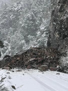 Producto de la nevada, se produjo un derrumbe en la ruta provincial 79, más conocida como el camino viejo a Colonia Suiza.