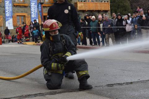 En el marco de la 53° Fiesta Nacional de la Nieve se realizó un certamen bomberil, donde los voluntarios pusieron a prueba sus destrezas y capacidades físicas. Por más de tres horas de competencia, los participantes sortearon grandes obstáculos cargados con el traje y diferentes elementos.