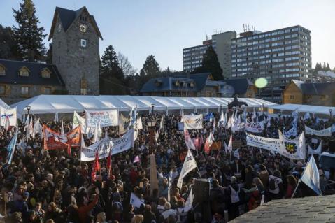 La plaza del Centro Cívico comenzó a llenarse y cerca de las 19hs podía observarse totalmente repleta con la llegada de todas las columnas de gente que marchó. Vale aclarar que ya está armada en el lugar la carpa del Bariloche a la Carta por lo que el espacio se vio reducido.