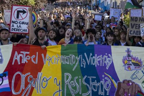Multitudinaria marcha LGBT+ en Bariloche: críticas a Milei y repudio por la custodia al monumento a Roca