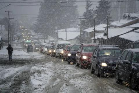 Desde Vialidad Nacional recomiendan a quienes deban viajar hoy por rutas de la región hacerlo con extrema precaución, luces bajas encendidas, velocidad reducida y portando cadenas. (ANB)