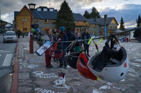 Un grupo de padres, alumnos y docentes autoconvocados de Bariloche reclamaron por la realización del Programa de Esquí y Montaña escolar 2024 en el Centro Cívico. El reclamo se hizo visible a partir de las 17:30 en la Plaza de los Pañuelos con la presencia de manifestantes vestidos con ropa de esquí y elementos propios de deportes de montaña.